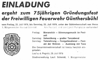 Im Jahre seines 75-jährigen Gründungsfestes (1976) machte die Freiwillige Feuerwehr Günthersbühl einen großen Schritt nach vorn. Zum einen wurde das neugebaute Feuerwehrgerätehaus übergeben und zum anderen konnte ein Löschgruppenfahrzeug (LF8) gebraucht übernommen werden.